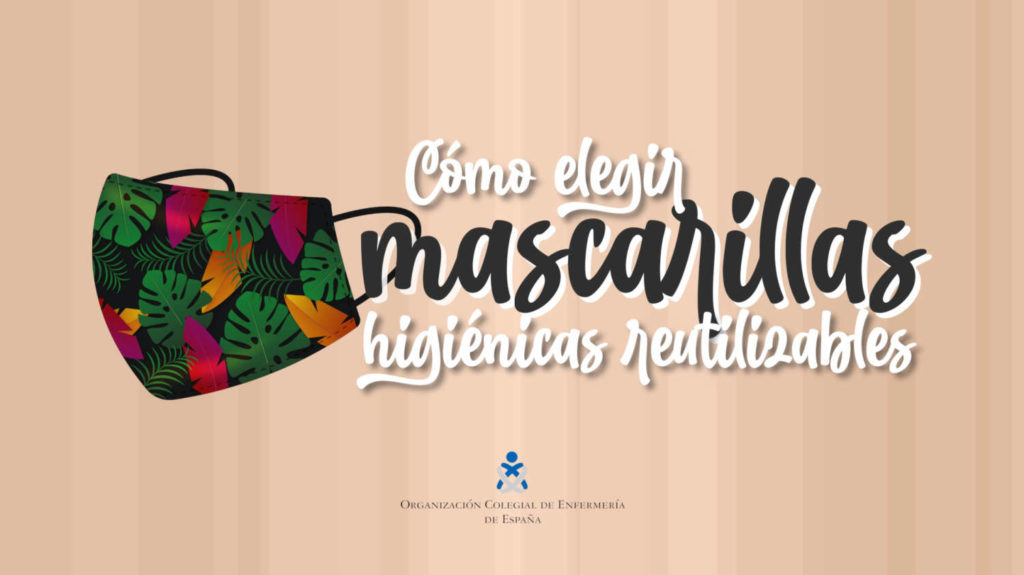 Hace ya muchos meses la mascarilla ha pasado a ser un producto necesario en nuestra lista de la compra. Las hay higiénicas de un solo uso o reutilizables, estas últimas conocidas de forma coloquial como mascarillas “de tela”. El Ministerio de Consumo ha prometido que en las próximas semanas lanzará la regulación específica para normalizar la comercialización de este tipo de mascarillas. A la espera de la regulación oficial, la Organización Colegial de Enfermería ha elaborado una infografía y un vídeo animado donde se enseña a la población en general a elegir las que más nos protejan frente al COVID-19.