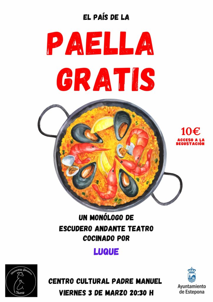 El Centro Cultural Padre Manuel acogerá el próximo viernes, 3 de marzo, a las 20:30 horas, la comedia ‘El país de la paella gratis’, un monólogo de la compañía Escudero Andante Teatro “cocinado” por Jesús Luque.