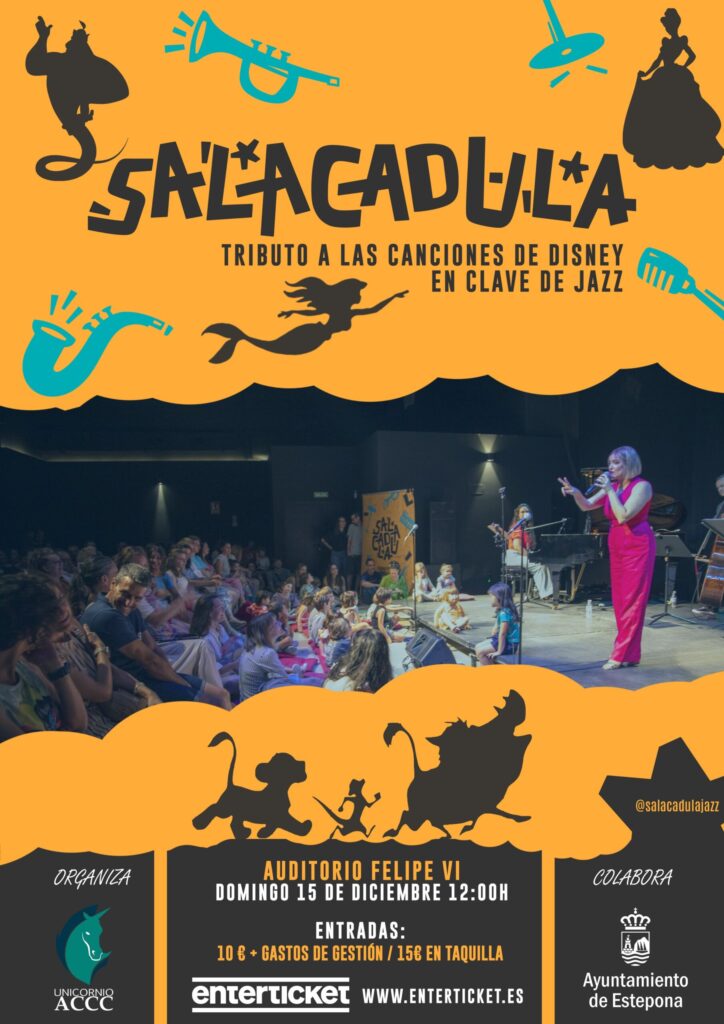Capitaneado por Laura León, cantante y vocal coach malagueña con más de 17 años de experiencia sobre los escenarios, ‘Salacadula’ es más que un simple concierto; es una experiencia musical que pretende acercar el Jazz a las familias, y enseñarles este género musical de una manera divertida, entretenida e interactiva. Todo ello, a través de los temas más famosos de Disney.