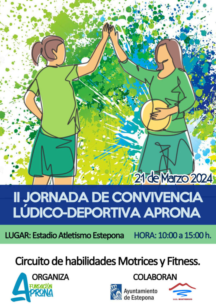 El próximo jueves 21 de marzo se llevará a cabo en el Estadio Municipal de Atletismo la II Jornada de Convivencia Lúdico-Deportiva Aprona, destinada a personas con discapacidad intelectual. Este evento está organizado por la Fundación a favor de Personas con Diversidad Funcional de Estepona, Aprona, con la colaboración del Ayuntamiento y del Instituto de Educación Secundaria Monterroso, e incluye actividades en las que se trabajan habilidades motrices y de fitness.