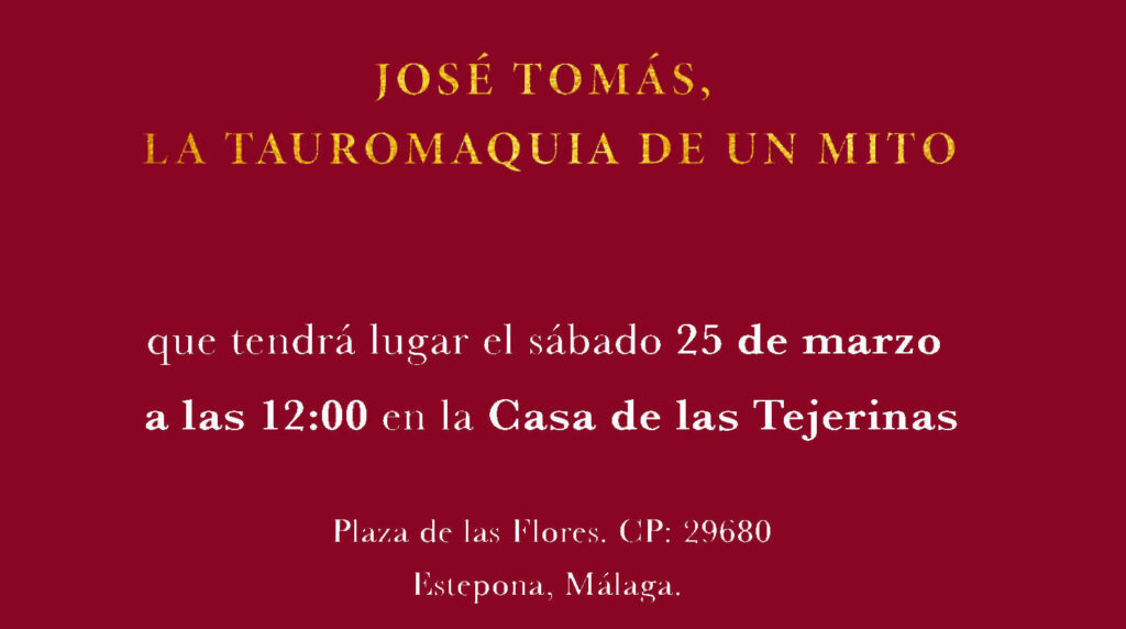 el fotógrafo sevillano Joaquín Arjona presentará este sábado 25 de marzo, a las 12:00 horas, en la Sala Alfonso Gil Alfonso de la Casa de Las Tejerinas, el libro ‘José Tomás, la tauromaquia de un Mito’.
