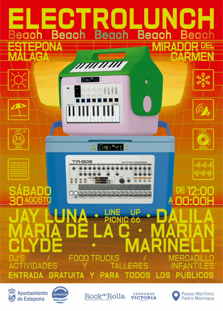 El festival Electrolunch llegará a Estepona el próximo sábado treinta de agosto con una propuesta de ocio cultural gratuita y al aire libre para todos los públicos en el entorno del Mirador del Carmen. El evento se desarrollará de 12:00 a 00:00 horas e incluirá talleres infantiles, mercadillo de artesanos y artistas locales, food-trucks y sesiones de DJs.