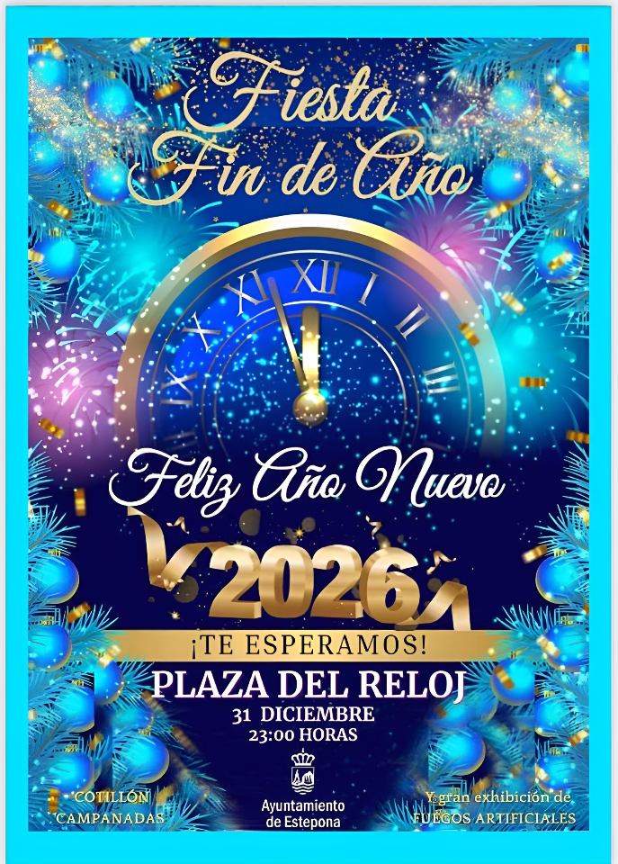 El Ayuntamiento de Estepona organiza una celebración de Fin de Año que tendrá lugar este 31 de diciembre a partir de las 23.00 horas en la Plaza del Reloj, espacio histórico del casco antiguo presidido por su emblemática torre del siglo XVI. La fiesta contará con la música en directo de la Orquesta Q Gain, agrupación especializada en espectáculos al estilo Las Vegas con repertorio desde los años 70 hasta el dance actual.