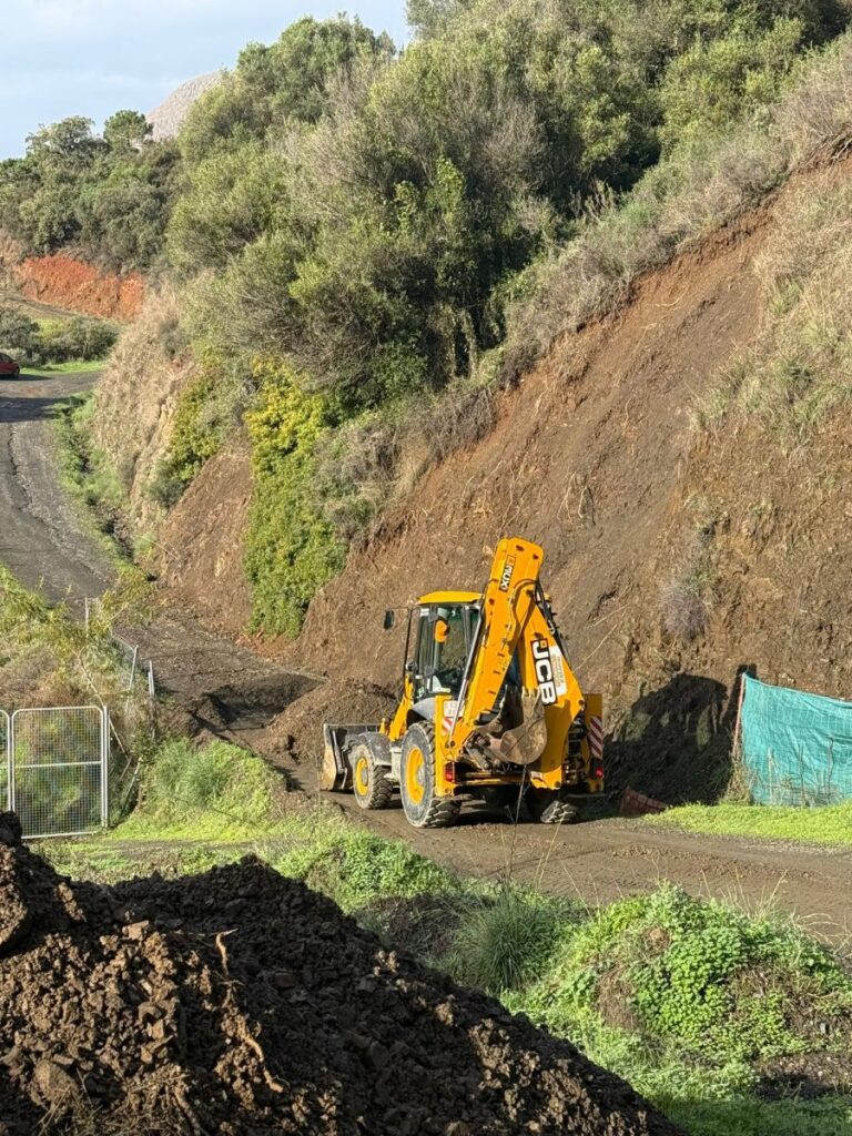 El Ayuntamiento de Estepona ha activado un dispositivo especial de limpieza y arreglo de caminos y pasos de ríos y arroyos afectados por las fuertes lluvias. Para ello, ha desplegado efectivos de las Brigadas Operativas Municipales que están trabajando en la zona de Cala Alta, donde se han registrado deslizamientos de tierras.