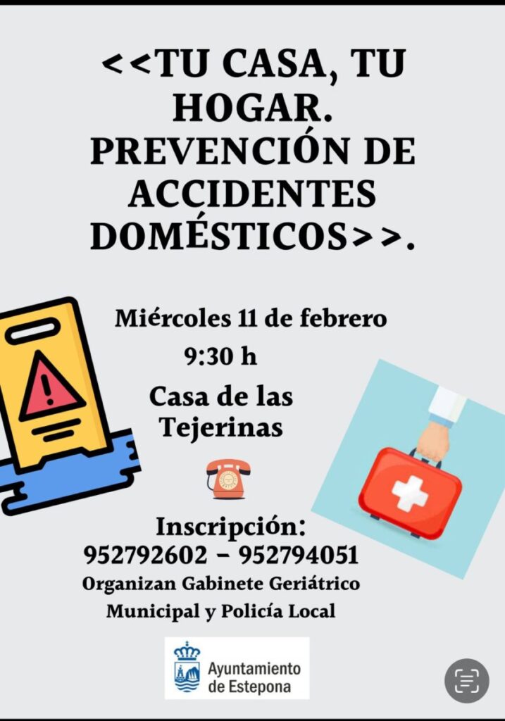El área del Mayor y la Policía Local de Estepona impartirán el taller ‘Tu casa, tu hogar. Prevención de accidentes domésticos’, una jornada formativa dirigida a personas mayores del municipio dentro del programa ‘Mayores activos: Vida Saludable’. La actividad tiene como objetivo fomentar la autonomía y la seguridad en el hogar mediante la identificación de riesgos domésticos y la adopción de medidas preventivas para reducir accidentes, especialmente caídas.