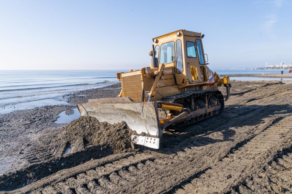El Ayuntamiento de Estepona trabaja en la recuperación del litoral tras los temporales e intensas lluvias registradas en las últimas semanas. La concesionaria del servicio de playas, Licuas, ha contratado un bulldozer para restablecer el perfil de las playas, alterado por la salida de ríos y arroyos al mar. Los trabajos se concentran en las desembocaduras de los arroyos, cuyos cauces han sido desplazados por la fuerza de las lluvias y el oleaje, generando acumulaciones de agua en la arena.