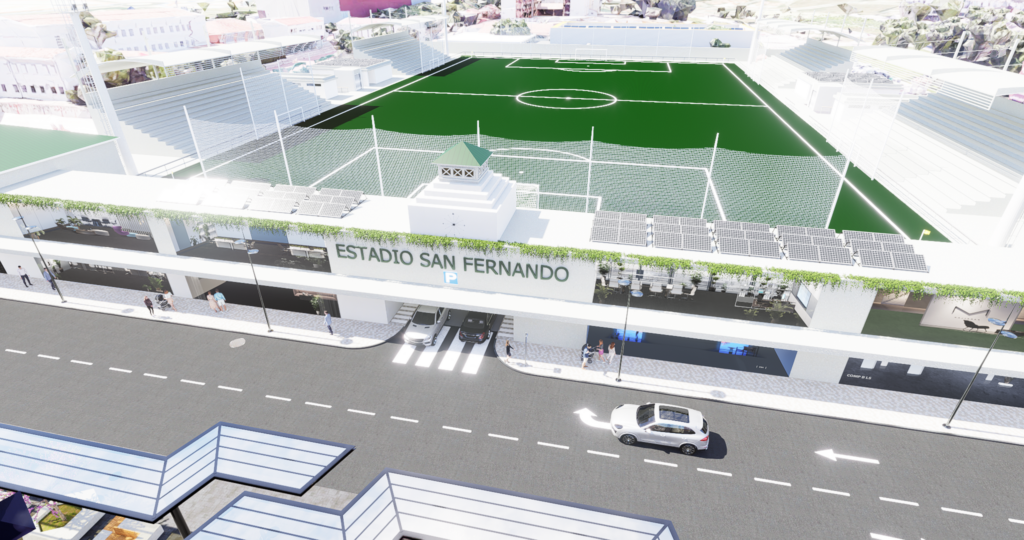 En materia de equipamientos deportivos se contempla también la renovación integral del campo de fútbol San Fernando, cuyo proyecto incluirá la creación de una piscina cubierta y un aparcamiento subterráneo con capacidad para 700 plazas, que irán ubicadas bajo el mismo campo de fútbol.