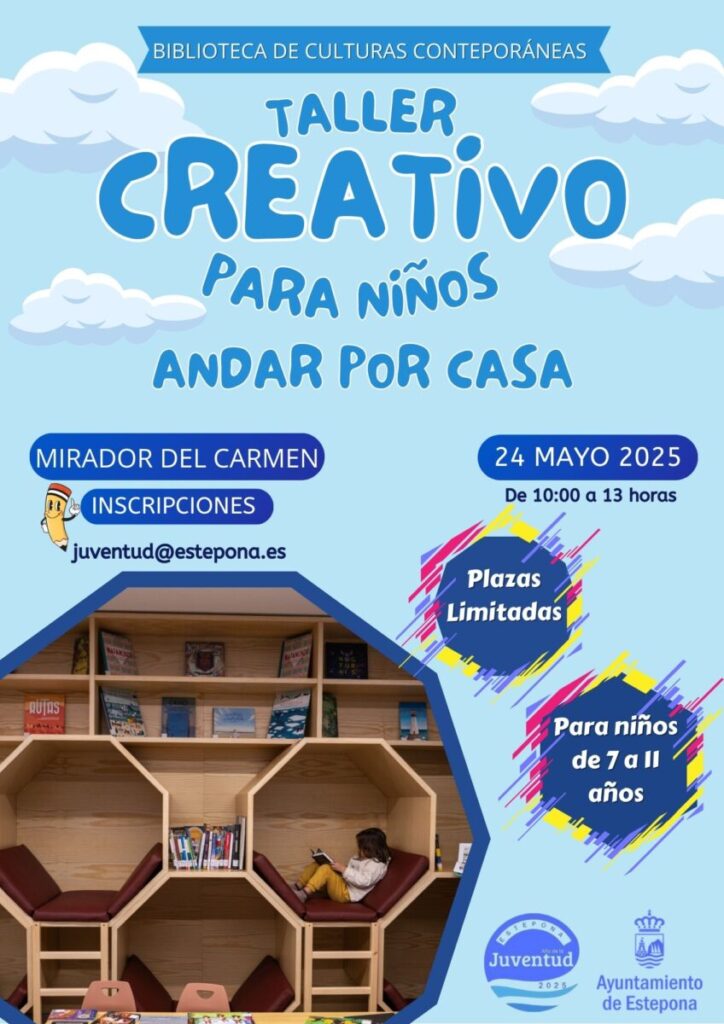 La Biblioteca de Culturas Contemporáneas de Estepona acogerá el próximo sábado 24 de mayo, de 10:00 a 13:00 horas, el taller creativo ‘Andar por casa’, una actividad dirigida a niños de 7 a 11 años. Esta iniciativa gratuita, organizada por el Ayuntamiento de Estepona, busca estimular la imaginación infantil a través de un recorrido por las ocho plantas del edificio.