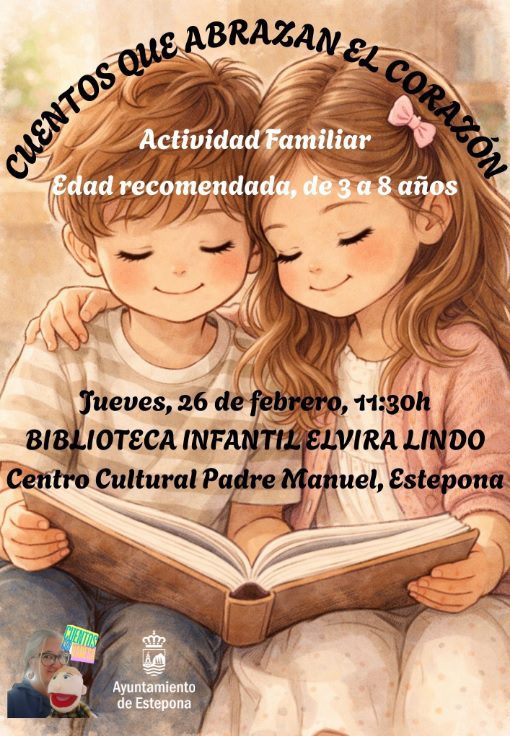 La Sala Infantil ‘Elvira Lindo’ de la Biblioteca Municipal, sita en el Centro Cultural Padre Manuel, acogerá el jueves 26 de febrero de 2026, a las 11:30 horas, el cuentacuentos familiar ‘Cuentos que abrazan el corazón’, a cargo de Vanessa López Morales. La actividad está especialmente diseñada para público infantil de entre 3 y 8 años, y el acceso será libre y gratuito hasta completar aforo.