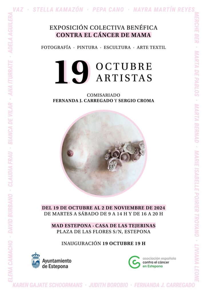 Coincidiendo con el Día Mundial contra el Cáncer de Mama, la Sala 2 de la Casa de las Tejerinas acogerá desde el próximo sábado 19 de octubre la exposición colectiva benéfica ‘19 de octubre, 19 artistas’. La inauguración de la muestra tendrá lugar a las 19.00 horas.