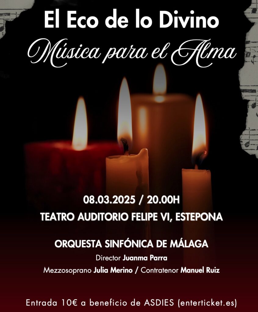 la Orquesta Sinfónica Provincial de Málaga (OSPM) ofrecerá un concierto de música sacra a beneficio de la Asociación de Personas con Discapacidad de Estepona, AsDi-Es. Tendrá lugar el sábado 8 de marzo, a las 20:00 horas, en el Auditorio Felipe VI.