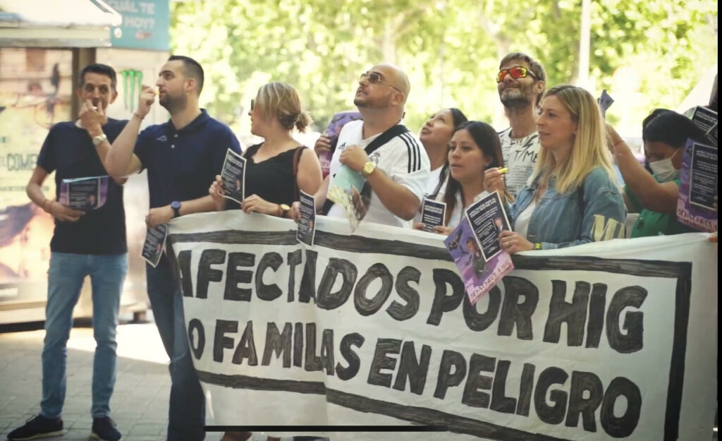 Medio centenar de familias, que dependen de los puestos de trabajo que ahora peligran, vienen concentrándose desde hace diez meses, todas las semanas, a las puertas de la sede de HIG Capital, en calle Antonio Maura, 4 de Madrid.