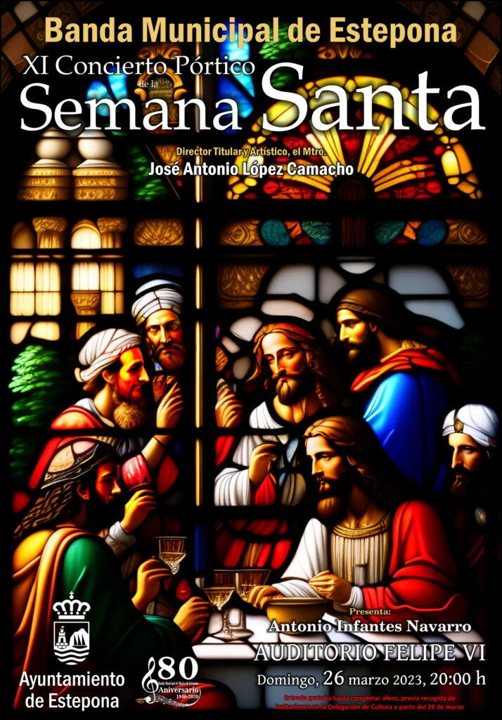 el próximo domingo 26 de marzo, a las 20:00 horas, tendrá lugar en el auditorio Felipe VI la celebración del XI Concierto “Pórtico de la Semana Santa” que, desde el año 2011, instaurara en la localidad el departamento artístico de la Banda Municipal de Estepona (BME).